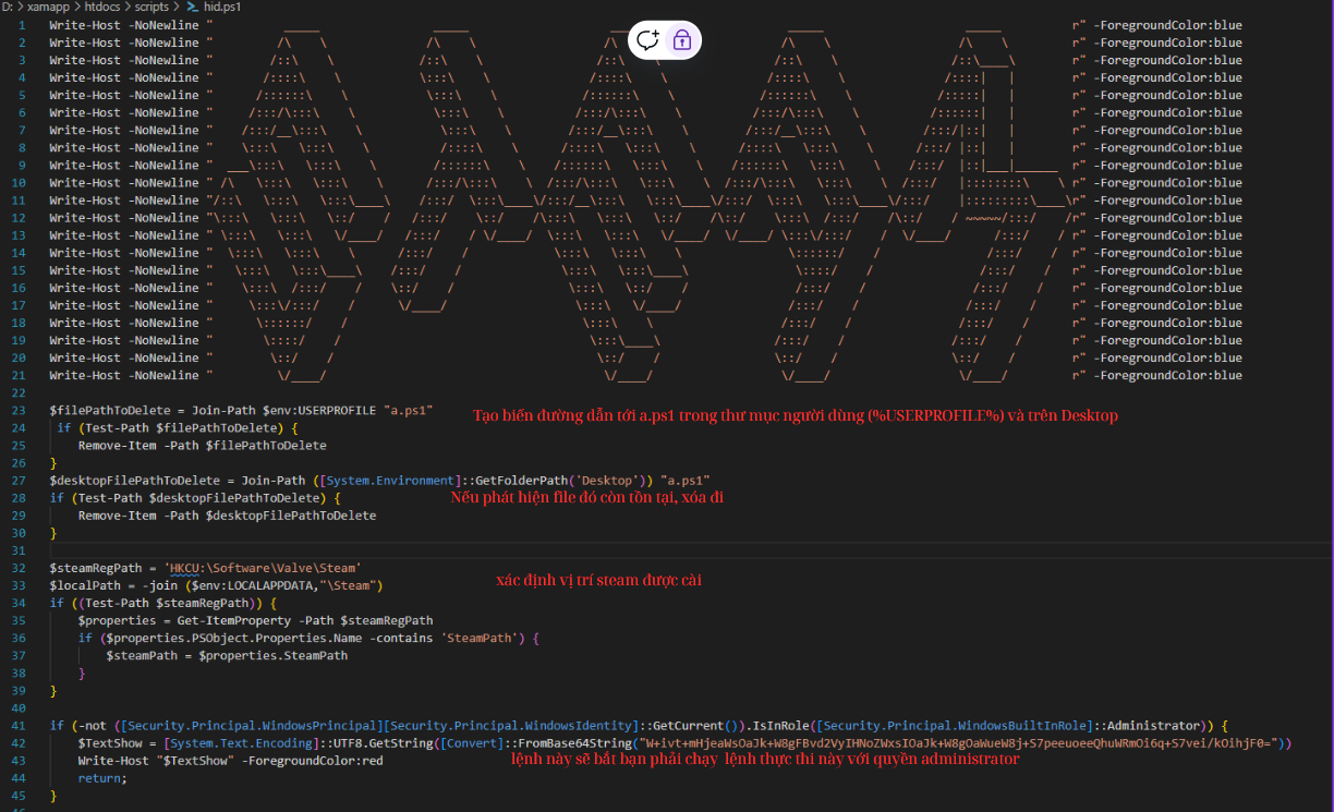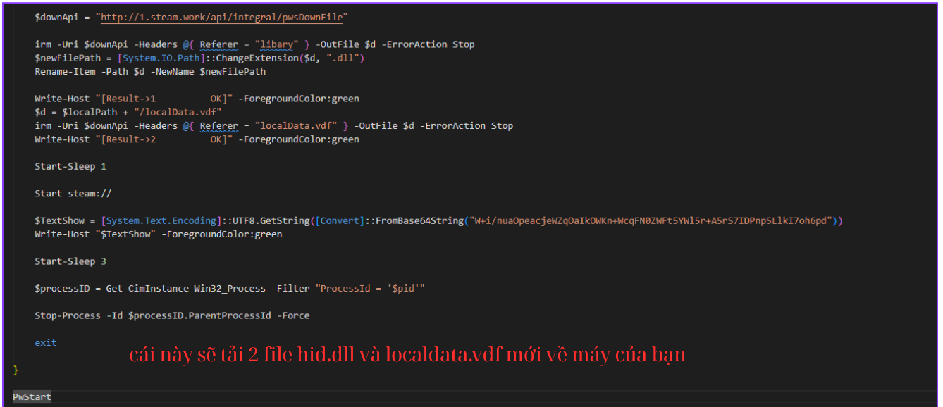 TÓM LẠI :  lệnh này sẽ tải 2 file hid.dll và localdata.vdf về máy của bạn với quyền thực thi là administrator . lưu ý defender sẽ không quét , bạn sẽ không thể phát hiện ra !!!!
